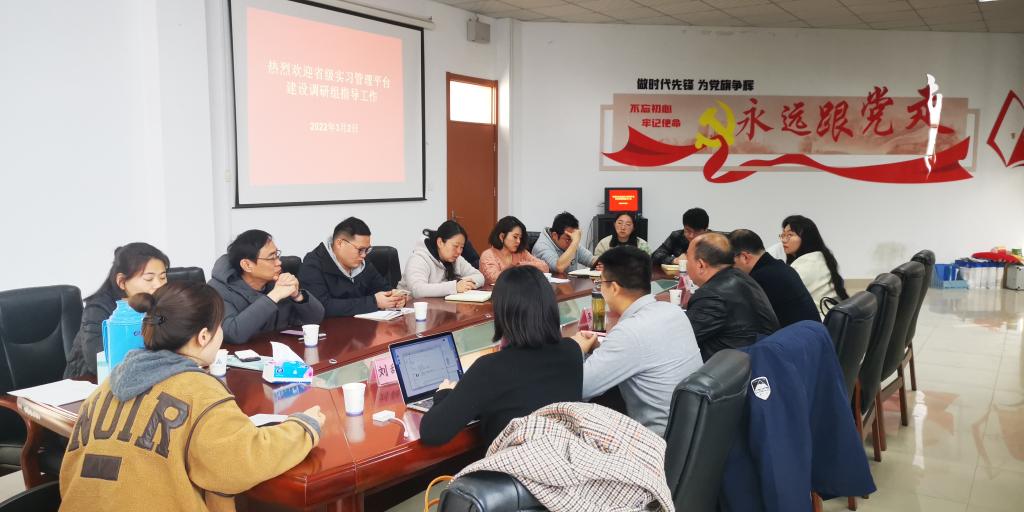 会上,调研组介绍了调研背景,根据《教育部等八部门关于印发<职业学校学生实习管理规定>的通知》文件精神,将实习纳入教育信息化建设覆盖范围,统筹建好、用好校内外实践教学资源。由合肥职业技术学院牵头搭建省级实习管理平台,为做好平台设计内容优化,开展关于实习管理工作内容的调研。