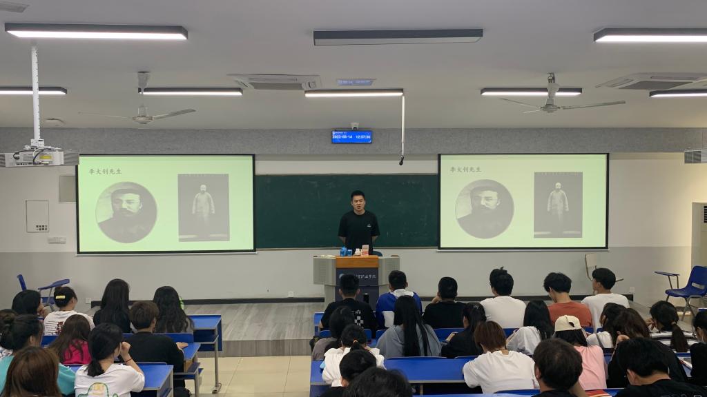 5月14日,经济贸易学院第53期党课班邀请商务经纪与代理2002班预备党员刘峰做《缅怀守常先生,追随先辈遗志》主题分享,党课班组织委员沈钰璇担任活动主持人,全体党课班成员参加。