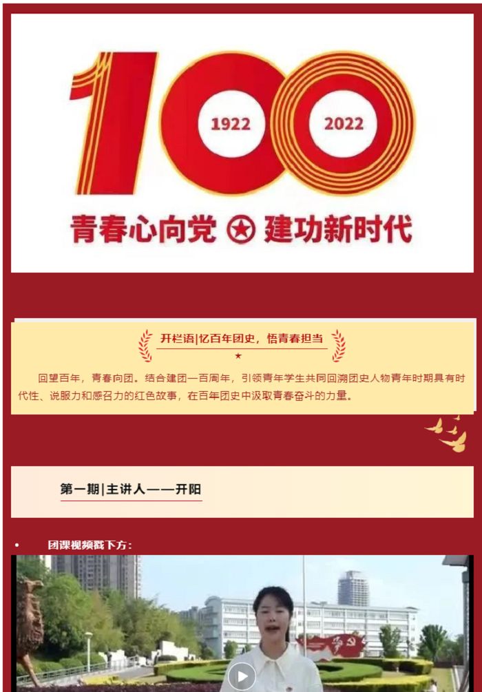 为回首中国共青团的百年征程,财会金融学院各班团支部观看团史视频并在各班级推送微信公众号“财金启航”关于“建团一百周年”的系列报道,以革命先辈为榜样,忠诚履职,切实增强荣誉感和责任感,把爱国热情化为动力,深化革命精神认识,传承红色基因。