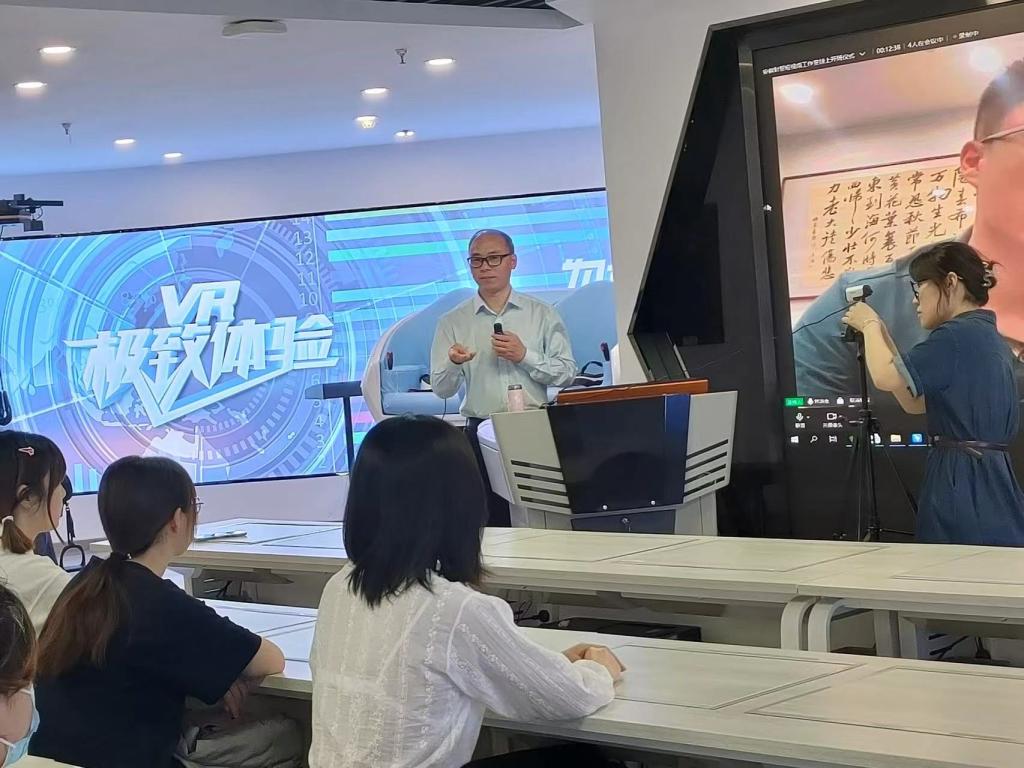 5月7日晚,由安徽财贸职业学院、福建中锐网络股份有限公司(以下简称福建中锐网络)、福州星动未来科技有限公司(以下简称星动未来)联合发起的“数字媒体短视频工作室”开班仪式在数字媒体VR综合实训室A803举行,旨在加快培养新型传媒人才、短视频方向技术人才,推动校企合作快速发展。信息工程学院院长张成叔,数字媒体技术专业课教师徐新星、陈小雨、李沐烟,以及企业方代表参加会议,会议由数字媒体技术教研室副主任、数字媒体技术专业负责人沈杨主持。