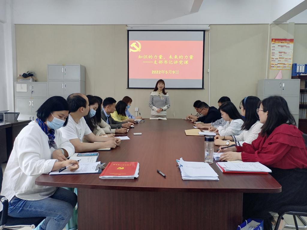 5月9日,经济贸易学院学生党支部在综合楼211办公室开展支部书记上党课活动,学生党支部书记丁蓉做《知识的力量、未来的力量》主题汇报,全体支部党员参会。