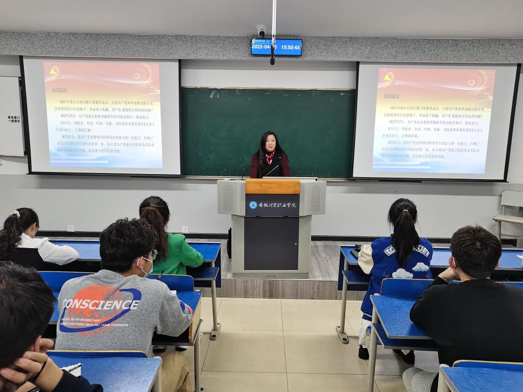4月30日,文化创意学院学生党支部书记宋凌云在教学楼5101教室开展了一次以“学党史不忘来路 担使命面向未来”为主题的微党课。学院预备党员、第53期入党积极分子聆听了党课。