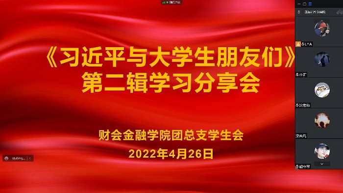 4月25日上午,中共中央总书记、国家主席、中央军委主席习近平来到中国人民大学考察调研,引起全国青年学子的广泛响应与学习热潮。为学深悟透这一学习习近平新时代中国特色社会主义思想的鲜活教材,助力青年健康成长,4月26日,财会金融学院团学干部及各团支部组织开展《习近平与大学生朋友们》学习分享会。