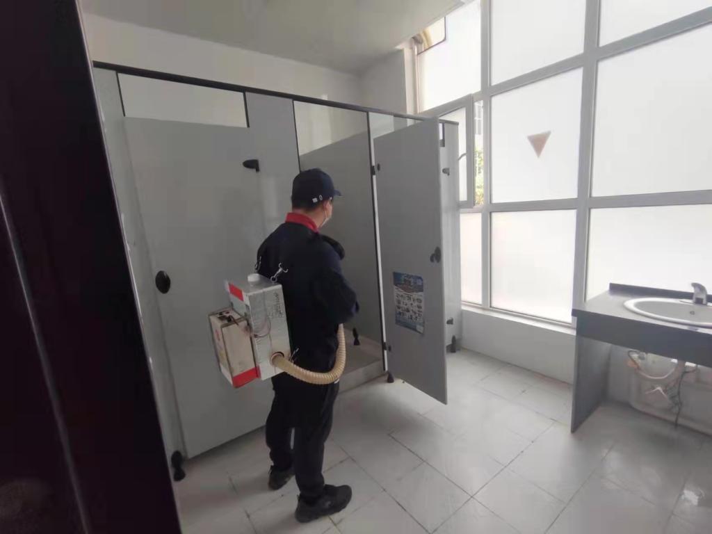 消杀工作人员严格按照卫生消杀管理的标准规范操作,针对不同的消毒场所和对象,选择不同的消毒剂,并按照消毒剂说明书配置溶液浓度,对楼宇周边环境及楼内公共大厅、公寓盥洗室、卫生间、走廊、楼梯间、垃圾箱、楼梯扶手等师生接触较多的区域进行全面的喷洒消毒,对室内物体表面进行喷雾消毒,不放过一个死角,确保彻底消毒。为确保消杀效果,总务处还安排医务人员对消杀过程全程跟踪监督。消杀过程中,还对校园内所有灭鼠毒饵站进行鼠药更换,新增灭蝇、灭蚊笼15套,投放诱饵30包,线桥缝隙死角处投放灭蟑诱剂等降低校园内病媒生物密度。