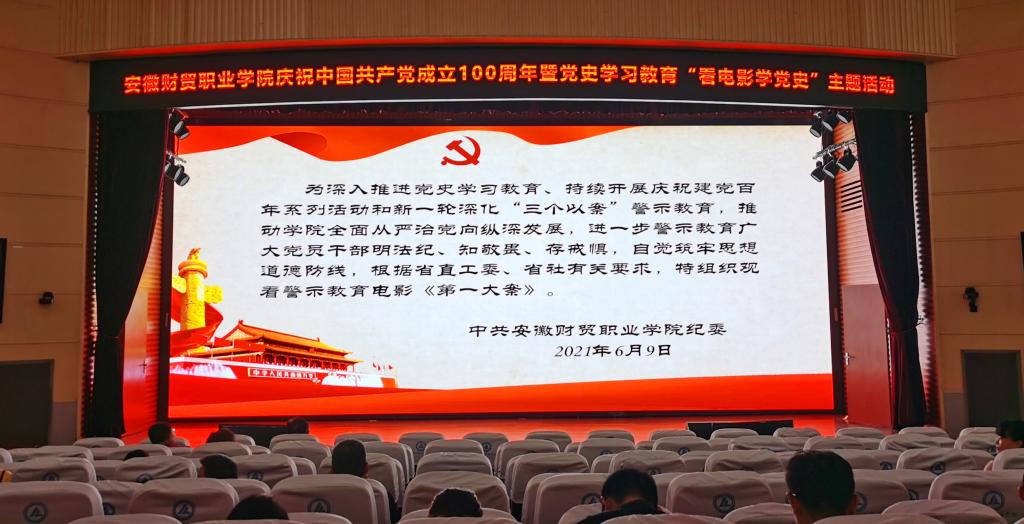 为持续推动学校全面从严治党向纵深发展,扎实推进新一轮深化“三个以案”警示教育,进一步警示教育广大党员干部明法纪、知敬畏、存戒惧,自觉筑牢思想道德防线,不断巩固警示教育成果,6月9日下午,学校纪委结合当前正在开展党史学习教育和庆祝建党百年系列活动,组织学院中层以上干部、全体党员集中观看廉政警示教育电影《第一大案》,为大家上了一堂鲜活的警示教育课。此次活动还作为2021年第10次学校党委理论学习中心组(扩大)学习会,丰富了党委理论学习中心组的学习形式。