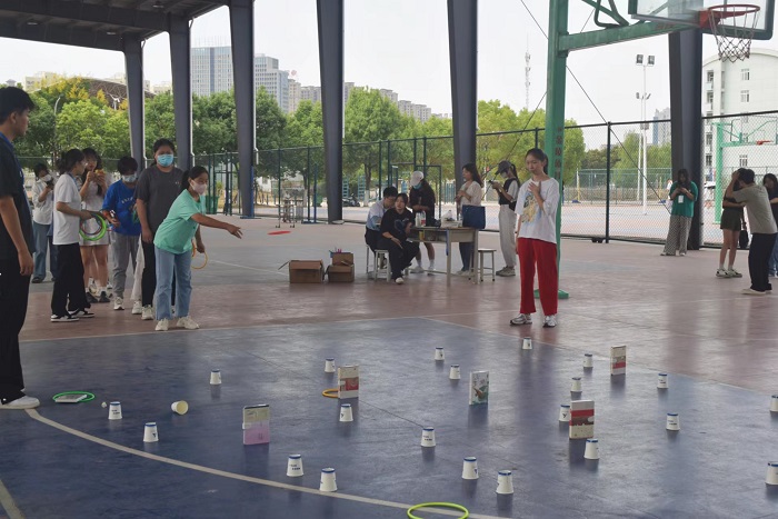 活动于9月10日至11日在风雨操场举行,各项活动组织有序,套圈、定点投篮、丢沙包、踢毽子等活动趣味横生。套圈的同学为了尽可能近的靠近目标物,身体甚至弓成了直角;定点投篮的同学还没开投就紧张到手心出汗;丢沙包和踢毽子的同学更是为了活动方便纷纷撸起袖子,卷起裤腿。有些项目很考验团队间的协调配合能力,队员们为取得胜利纷纷使出浑身解数,现场一片欢声笑语。无论是个人项目还是团体项目,都展现出了财会金融学院学生的青春风采。
