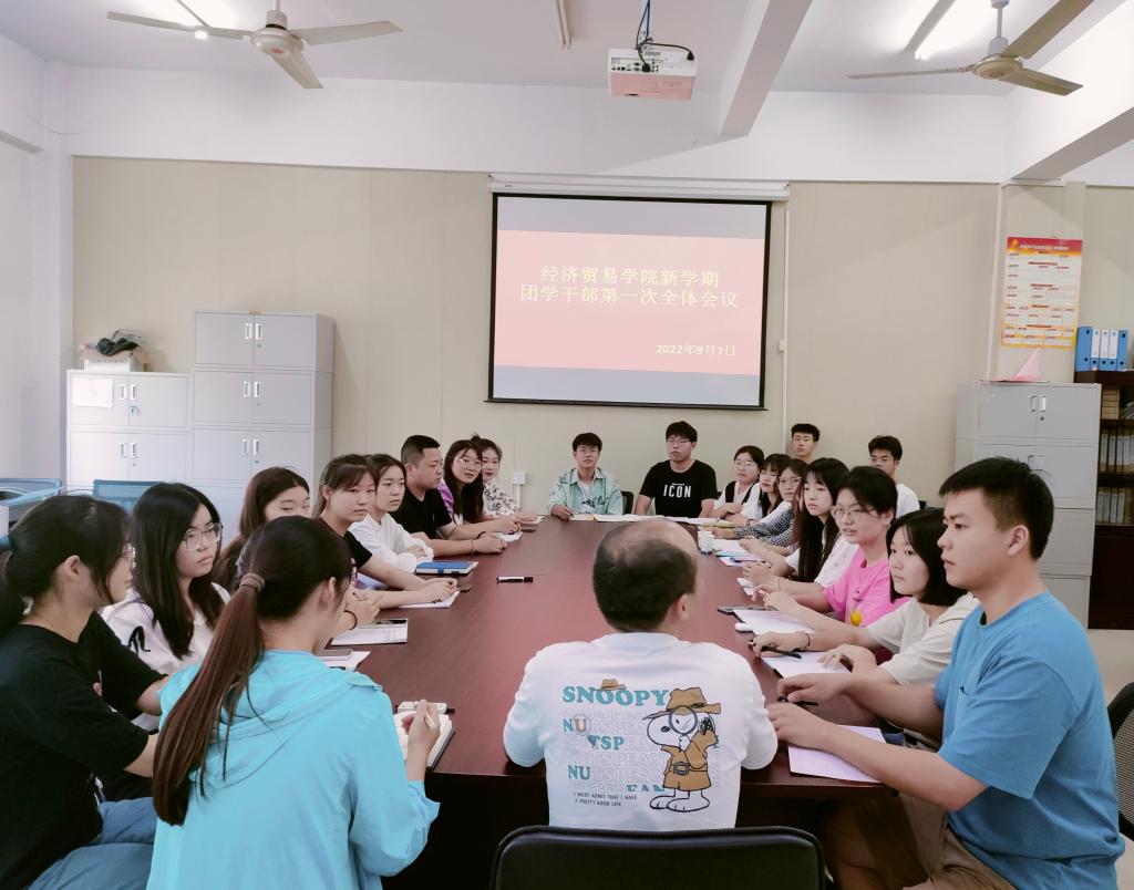 9月7日,经济贸易学院召开2022-2023学年新学期团学干部第一次会议,会议由经济贸易学院团总支书记张超主持,专职辅导员王露露和全体团学干部参加本次例会。