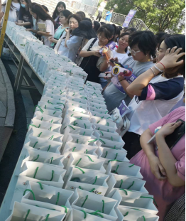 学生食堂门前广场,学生参与火爆,提前排起了长长的队伍。“太意外啦,我也与父母分享了这个惊喜,这种被宠爱的感觉很幸福。”“之前刷到的都是别人学校的温暖,没想到今天一下课就收到惊喜,很开心,也很感动。“阡陌物业服务中心工作人员陈列好节日的礼物一一派发给同学们,同学生们一起享受着传统佳节里浓浓粽香和温情,同时也让大家感受到了“家”的感觉。