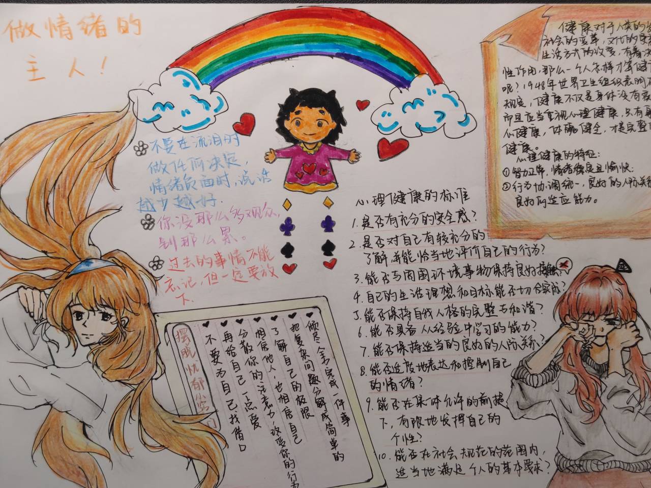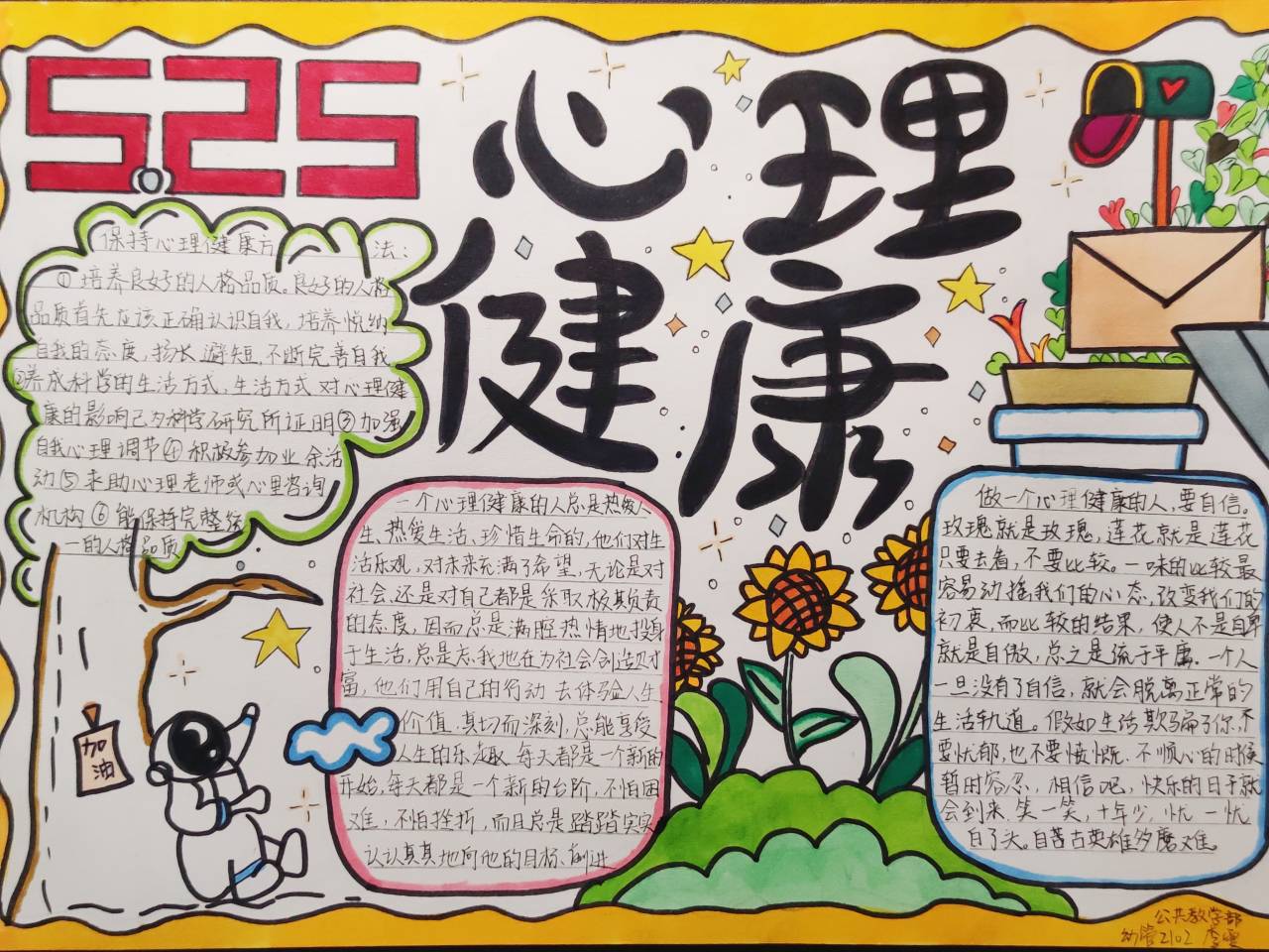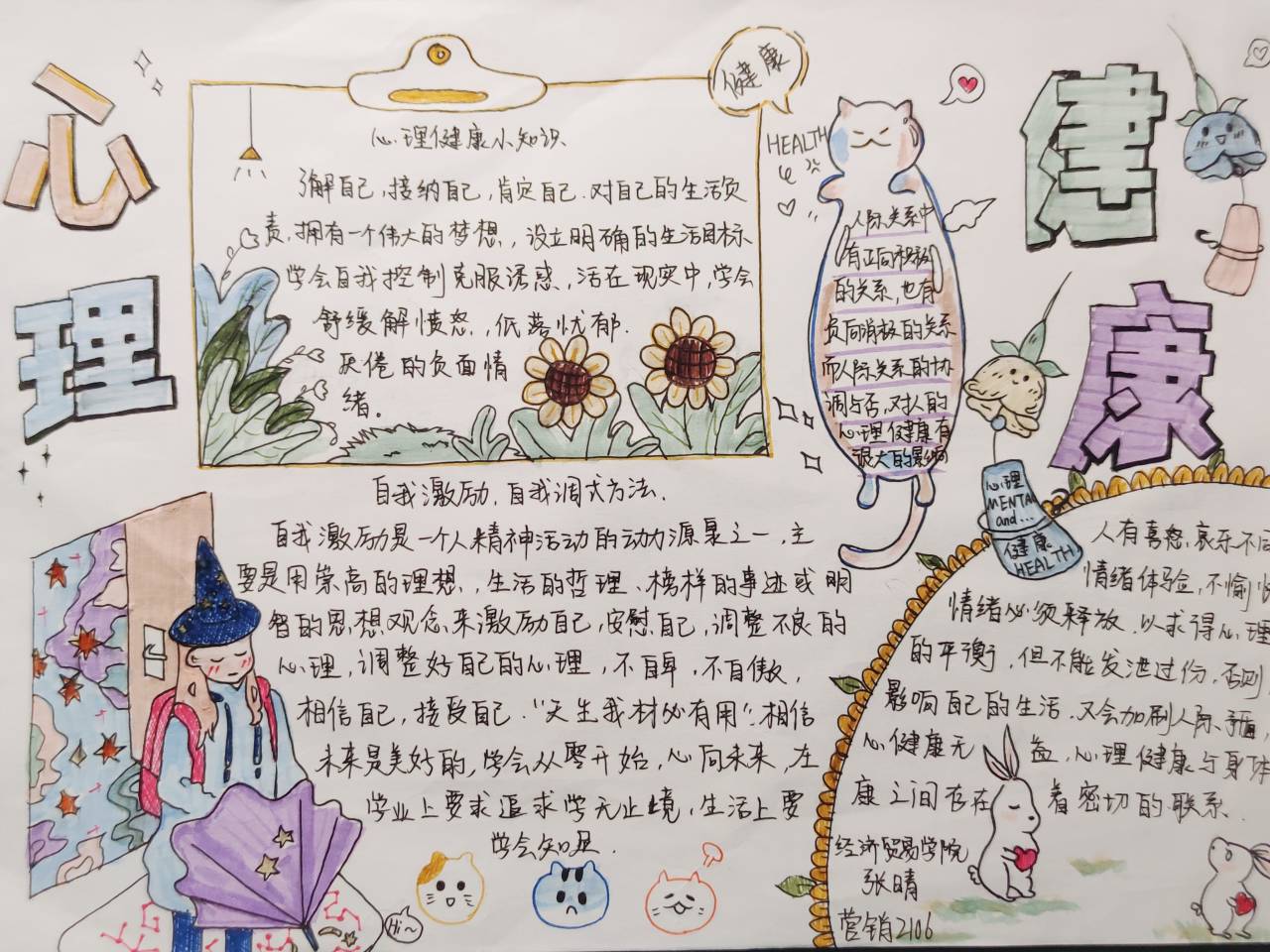 5月25日是“全国大学生心理健康日”,经济贸易学院面向全校学生开展了以“用画笔勾勒健康青春”为主题的心理健康手抄报大赛,活动丰富了同学们的校园生活,缓解了常态化疫情防控期间同学们的负面情绪。