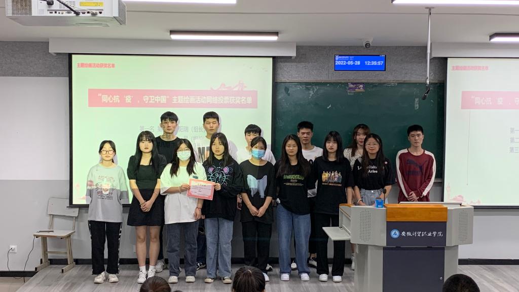 活动中,占陈芳为本次党课培训实践活动“同心抗‘疫’,守卫中国”主题绘画活动网络投票获得前三名的小组成员颁奖,为第53期党课培训班“优秀学员”颁奖,并合影留念。活动后班长杜蒙给获奖成员颁发礼品。