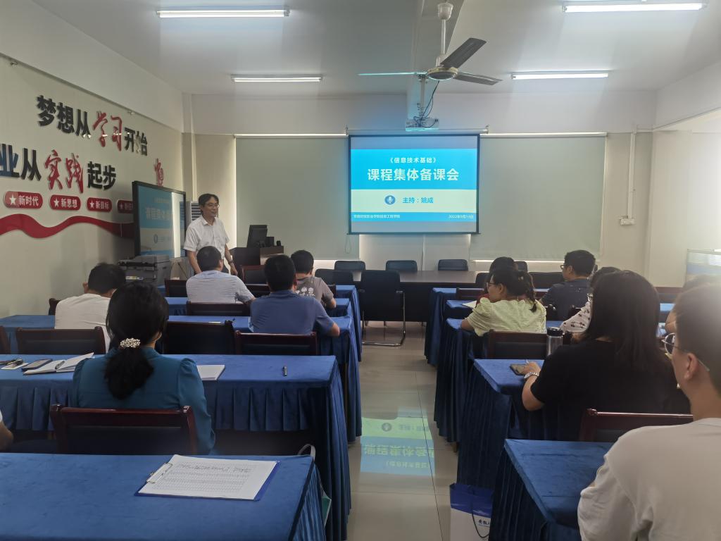近日,信息工程学院采用线上和线下会议相结合的方式,分两期组织召开了《信息技术基础》课程集体备课会。本次集体备课会由院长张成叔主讲,副院长姚成主持。承担本学期《信息技术基础》课程教学任务的全体专任教师、行政兼教以及校外兼职教师参加会议。此次会议旨在更好落实《信息技术基础》课程的国家标准,提高《信息技术基础》课程的教学质量,有效搭建教师之间相互学习平台。