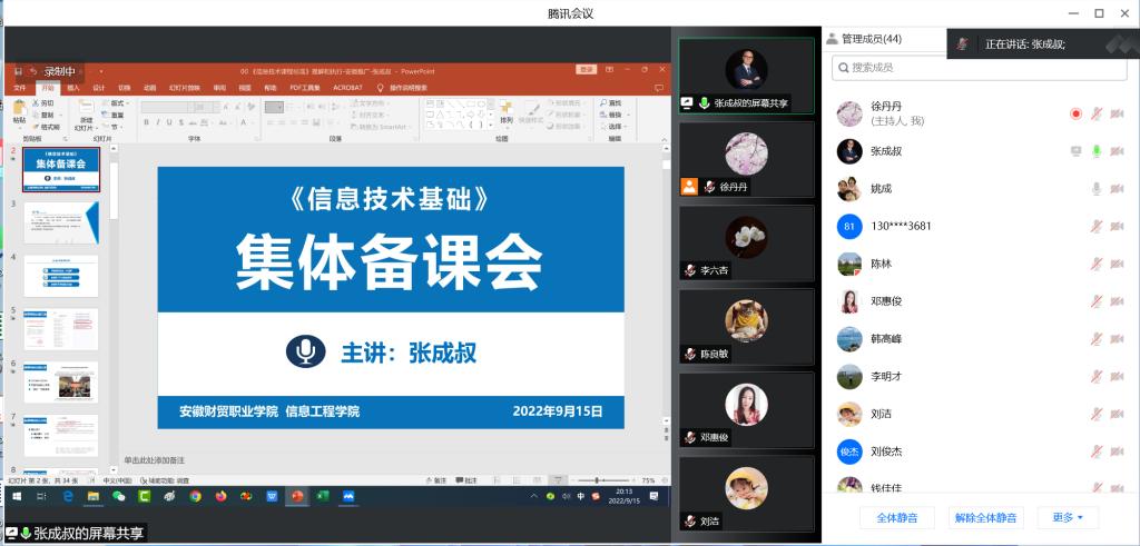 通过本次集体备课,帮助任课老师们进一步领悟新课标,实现了“三个统一”,课程思政思想统一、教材和教学资源统一、教学进度和考核标准统一,为本学期《信息技术基础》课程教学和建设打下了良好的基础。(供稿:徐丹丹 审稿:张成叔)