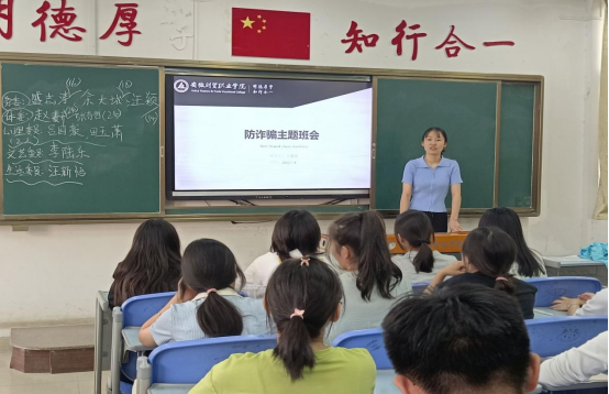 各班辅导员认真打造“防诈骗”主题特色班会,组织同学们观看防诈骗的视频,讲解防诈骗案例,总结常见诈骗套路,引导全体学生积极使用国家反诈App。通过反面警示、正面引导,在校学生防诈意识显著增强,擦亮识骗慧眼。
