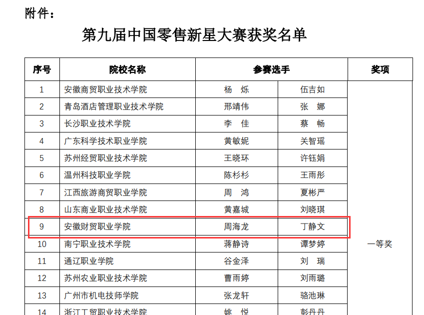 此次赛事围绕商贸行业企业先进技术,将真实的工作过程、项目任务和要求融入比赛环节,设置行业课程学习、行业实战课程考核、案例调研分析汇报3个模块。同学们在比赛过程中充分发挥团队协作精神,最终取得了全国一等奖的良好成绩。此次参赛进一步拓展了学生的专业视野,提高了学生的技术技能水平和创新创业能力,培养了学生的自信心,提升了学生们的创业意识和对零售市场的了解,增强了组织能力、协调能力和团队合作意识。(撰稿:尹云磊审稿:江友农)