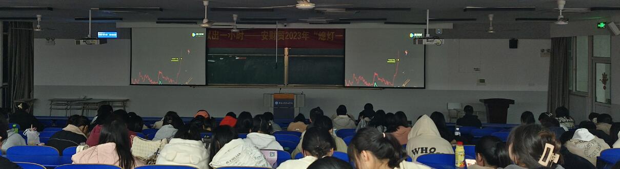 熄灯后,学生公寓自律委员会在6103教室播放了环保主题类电影《难以忽视的真相》,号召参加观影学生现场签名,写下“倡导低碳生活,共建绿色家园”“为地球献出一小时,从你我做起”等绿色寄语,承诺从自我做起,从小事做起,将节能理念融入日常,践行低碳生活。本次活动实现全校6栋学生公寓全覆盖。通过公寓楼电子显示屏和教室多媒体等,多载体多渠道发出“地球一小时”活动倡议,号召大家节约每一滴水、每一度电、每一张纸,践行光盘行动,坚持绿色出行,做好垃圾分类,共建“节约安财院”。