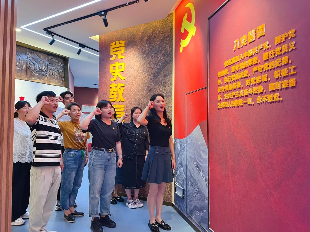 在多媒体和数控模拟区域,大家通过“我与党史故事”“党建知识问答”“美好寄语”等模块,再次学习了党史知识和党建知识。