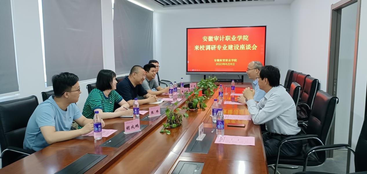 刘放介绍了安徽审计职业学院计算机类专业的建设情况和申报计算机应用技术专业和数字媒体技术专业2个新专业的准备情况,对我院在专业建设上取得的成果表示赞扬,对在新专业申报上给予的支持和帮助表示感谢。(供稿:余璐 审稿:张成叔)