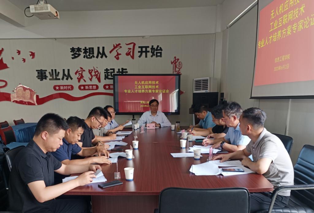 6月2日上午,信息工程学院召开2023级无人机应用技术和工业互联网技术专业人才培养方案专家评审认证会。邀请了合肥职业技术学院章炳林教授、安徽城市管理职业学院纪启国副教授、安徽交通职业技术学院张翼副教授、北京新大陆时代科技有限公司区域总监台金涛、安徽蓝柏教育科技有限公司技术总监任志学、上海双瀛航空科技有限公司技术总监赵云龙、北京新大陆科技有限公司技术总监马达等7位专家分别对两个专业培养方案进行了评审。信息工程学院副院长姚成教授、应用电子教研室主任陈林和副主任孙成正参加了本次评审会。