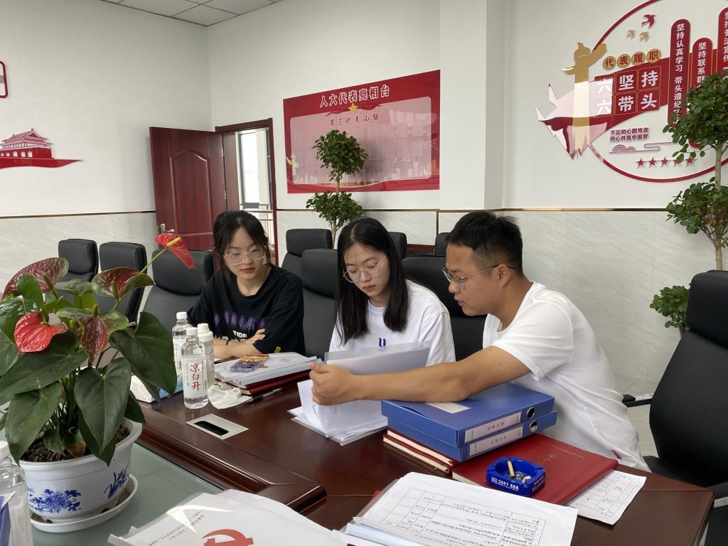 本次暑期“三下乡”志愿服务队由11名队员组成,共分为三组。第一组在妇联主席王丽的指导下开展“党建半年查”,根据孙岗镇2023年度党组织建设半年督查考评细则,查询各村上半年“三个一”配备情况、党课情况等;第二组在扶贫专干周志远的指导下,对年度务工交通费补助进行修改和批复,通过全国防止返贫监测和衔接推进乡村振兴信息工作系统反复核实校对名单,确定村民交通费补助的金额;第三组负责孙岗村“监督一点通”小程序的推广,向村民们介绍具体作用和使用方法,让村民们通过手机方便快捷地了解村委会发布的实时信息、查询本人社保等信息。活动中,队员们在孙岗镇烈士陵园缅怀先烈,聆听红色故事,重温入团誓词。