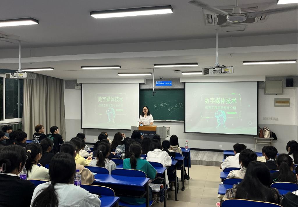 9月21日晚,数字媒体技术专业2023级新生共91人在6101教室进行了专业教育。教研室副主任沈杨担任主讲,专任教师李沐烟出席。