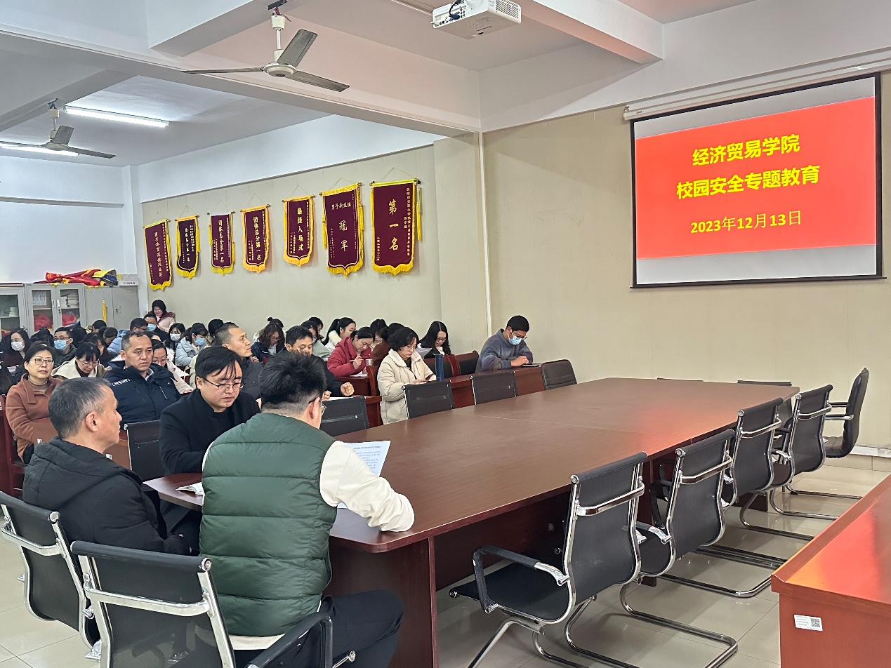 为进一步增强师生的安全意识,扎实推进校园安全工作,12月13日下午,经济贸易学院党总支组织全体教职工在212会议室开展校园安全专题教育,经济贸易学院副院长曹宝亚主持会议。