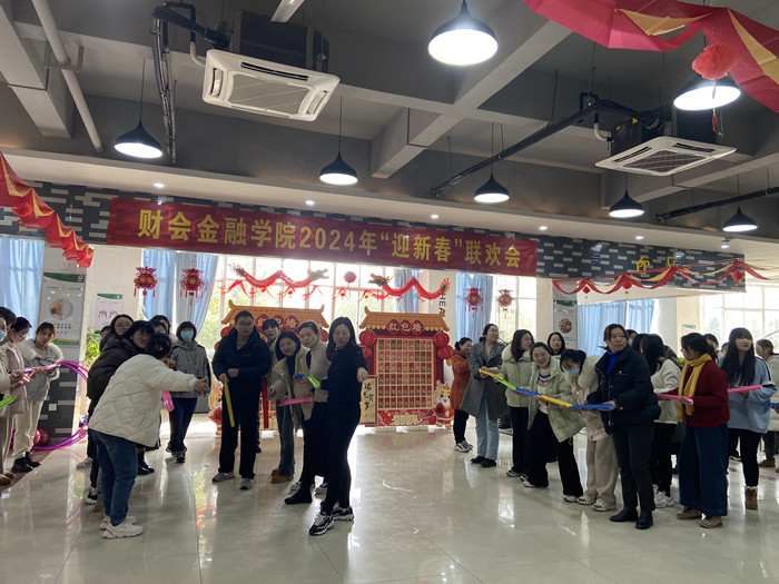 龙腾瑞气,砥砺前行。1月15日下午,财会金融学院分工会全体教职工欢聚一堂,举办2024年迎新春联欢活动。校领导张志祥、何翔、胡戴新、罗虹和校工会负责同志与大家一起喜迎新春,共度美好时光。