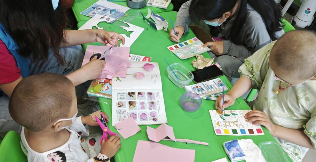 志愿者们根据自己的专业知识,以一对一的形式针对“星星”儿童的不同情况帮助他们进行康复训练,带着他们散步、教做简单的手工、教练画画等,尽自己的最大可能给予孩子们更多的陪伴。