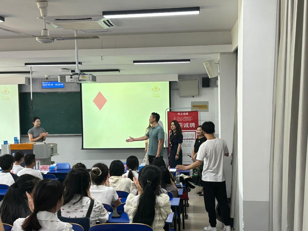 此次招聘会分为三个专场,分别面向婴幼儿托育服务与管理专业、商务英语专业专场以及运动健康指导专业、食品营养与健康专业。活动中,各家企业围绕企业特色、岗位需求、工作环境、薪酬福利、职业发展前景等内容进行宣讲,同时优秀学长学姐也回到母校分享其在企业中的成长故事。同学们热情高涨,认真听讲记录,并积极提问互动。宣讲结束后,同学们针对意向企业投递简历并进行面试交流。