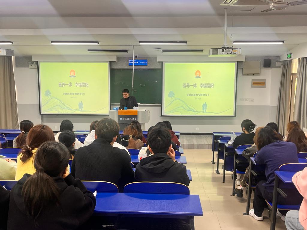 宣讲会现场,安徽今统食品有限公司、安徽儒阳康复护理院有限公司、安徽鼎校教育科技有限公司等3家企业依次进行宣讲。宣讲人通过宣传视频、PPT展示及互动问答等形式,详细介绍了企业发展前景、岗位需求及职业发展晋升等情况。其中,食品营养与健康专业聚焦食品质检、营养烘焙等热门领域;智慧健康养老服务与管理专业针对养老机构管理、健康护理等新兴岗位;商务英语专业岗位涵盖英语培训教学等方向展开招聘。