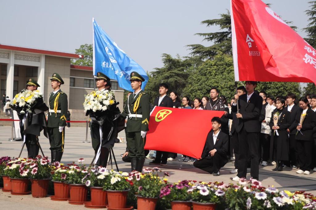 纪念碑前庄严肃穆,全体人员奏唱国歌,团员重温入团誓词,师生默哀鞠躬、敬献花篮,深切缅怀革命先烈,表达崇敬追思之情。随后,众人参观安徽革命烈士事迹陈列馆,学习江淮英烈事迹,感悟中国共产党人的初心使命。