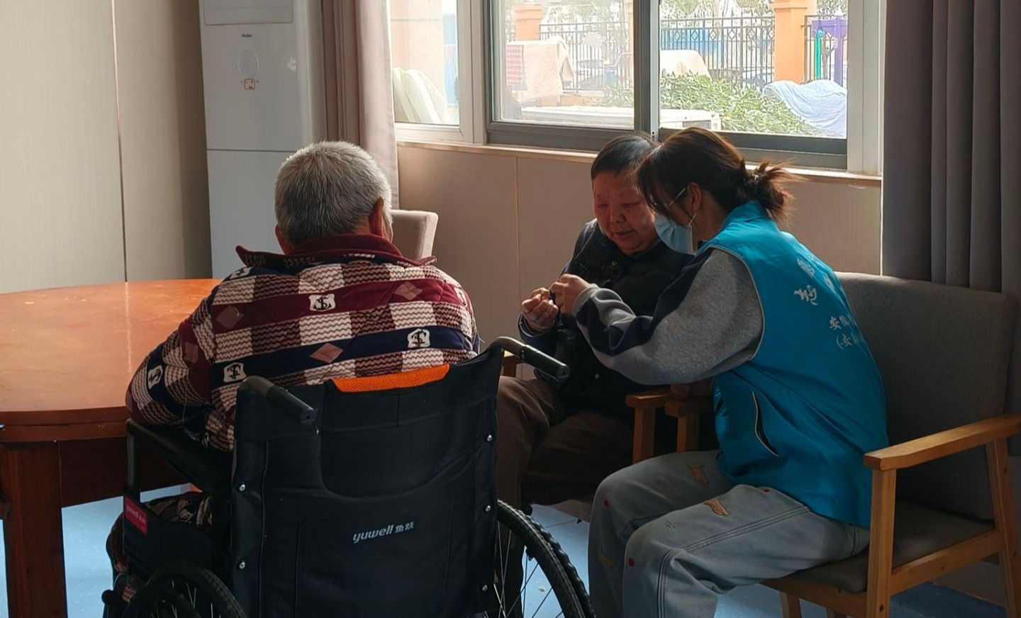 一来到老年公寓,志愿者们就开始忙碌起来,原本安静的老年公寓顿时变得热闹起来。有些志愿者拿起工具对公共区域的卫生进行大清扫,有些志愿者帮助老人修剪指甲、整理床铺,有些志愿者则推着行动不便的老人来到院子里晒太阳。阳光下的老年公寓充满了温馨。