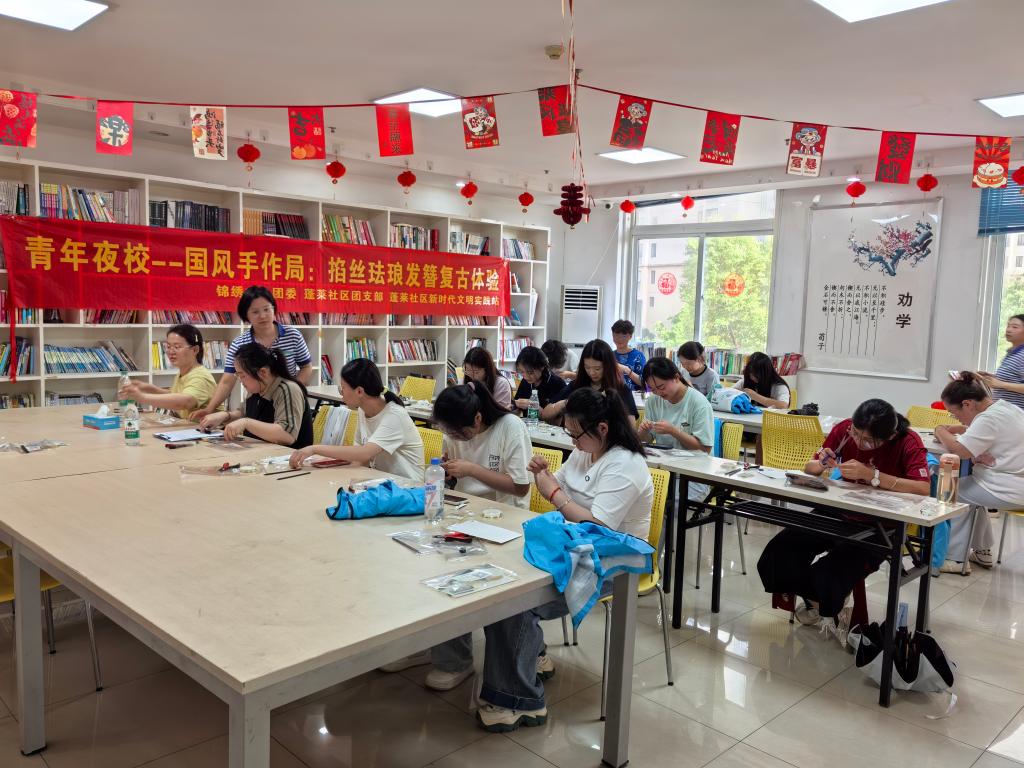 5月21日,文化创意学院组织10余名青年学生参加蓬莱社区青年夜校主题活动,旨在满足青年多元化发展需求,进一步拓宽共青团服务青年阵地,促进青年学生对非遗文化的深入了解。