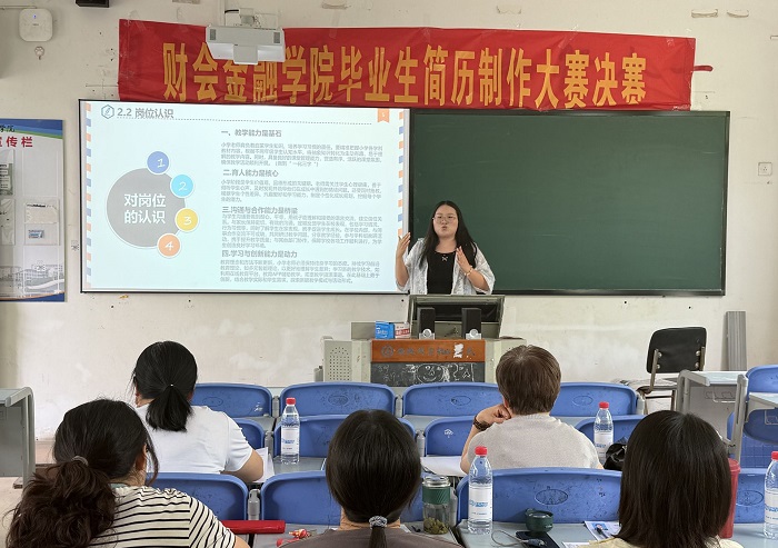 5月14日,财会金融学院在3102教室举办2026届毕业生简历制作大赛。财会金融学院党总支书记胡宏萱、副书记左艳琼、学生管理干事及专职辅导员老师参加并担任评委。