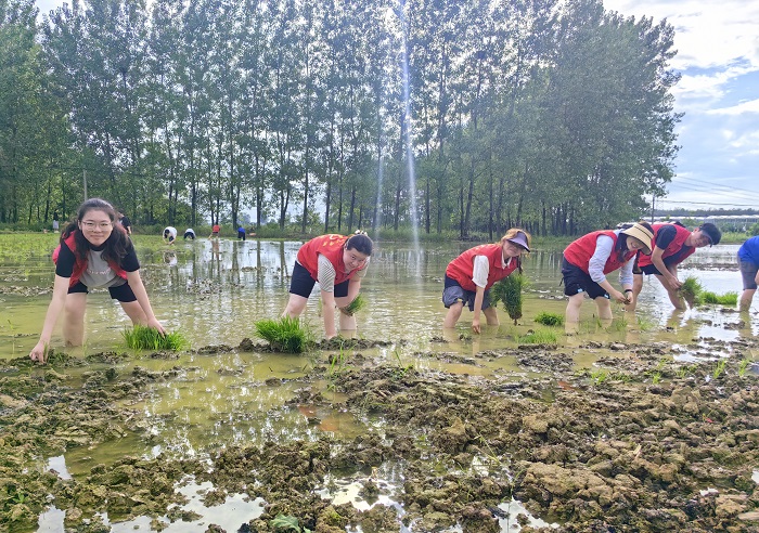 活动伊始,在乡村讲解员的带领下,一行人参观调研了马郢村村史馆、创业者部落,学习马郢村的蜕变之路、马郢计划的非凡意义、创业产业等,感受梦想之村马郢的独特魅力。此外,团队成员走进情圆农场,从下梨到打包到电商直播再到发货,开展农事志愿服务。积极探讨“老种子保护计划”,赤脚踩进水田插秧苗,感受乡村乡土的温度。