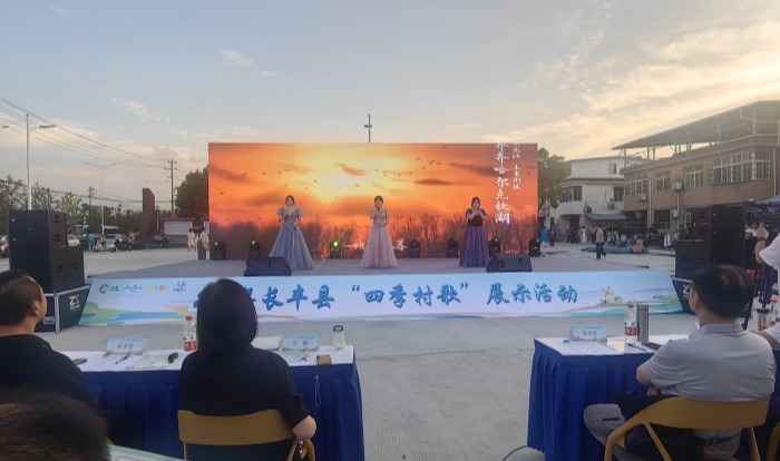 8月4日,2025年长丰县“四季村歌”展示活动在长丰县金岗社区广场拉开帷幕。财会金融学院“我为乡村绘风景”团队受邀参与此次活动。