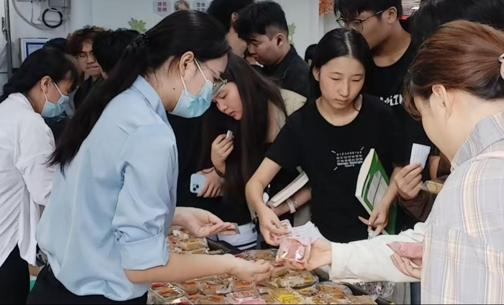 工作人员将精心准备的月饼、酸奶整齐摆放,热情地为同学们分发。蛋黄细沙、奶黄流心、揽月凤梨等多种口味月饼让学生们“眼花缭乱”,同学们一边品尝着美食,一边交流着家乡的中秋习俗。不少同学还拿出手机拍照,记录下这温馨的时刻,在朋友圈分享这份来自学校的特别关怀。