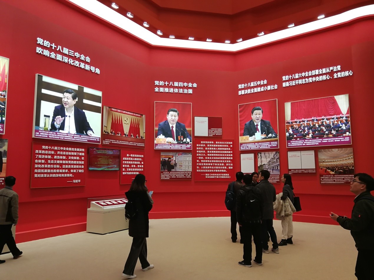 一幅幅历史图片与实物场景,一段段文字视频与虚拟动画,一堆堆沙盘模型与古物旧件,一次次互动体验与倾听讲解。强化了前后对比、突出了横向对照。使我们对改革开放40年来,特别是党的十八大以来,人民群众生产生活发生的伟大变迁,有了更加直观和深刻的认识。巨大的变迁伴随着飞速的发展,由此中华民族迎来了从站起来、富起来到强起来的伟大飞跃。大家为此深感自豪,纷纷拍照留念。