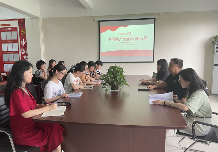教师第二党支部书记查静以《学党史、悟思想、办实事、开新局——中国共产党的创立》为题,从中国共产党创立的背景、中国共产党早期组织的建立、中国共产党第一次全国代表大会的召开和中国共产党创立的历史意义等四个方面,全面阐述中国共产党的百年历史就是为中华民族的独立、解放、繁荣、富强,为中国人民的自由、民主、幸福而不懈奋斗的历史,要从党的不懈奋斗史、不怕牺牲史、理论探索史、为民造福史、自身建设史的深刻发展逻辑中,不断汲取历史能量。