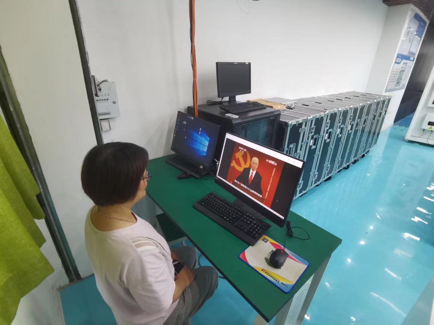 7月30日,信息工程学院党总支开展“党员干部党史教育日”活动,全体党员同志参观马克思主义学院智慧思政情境实训室,重温入党誓词,在线开展党史学习教育。