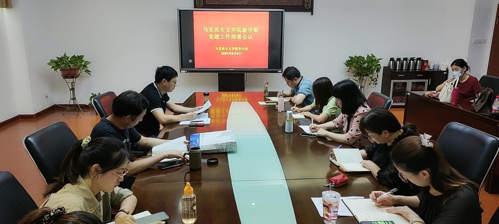 9月8日下午,马克思主义学院组织全体党员在行政楼第三会议室召开新学期党建工作部署会议。党支部书记王良斌主持会议,支部副书记崔学明和全体党员教师通过“领学、自学、研学”的方式展开学习。