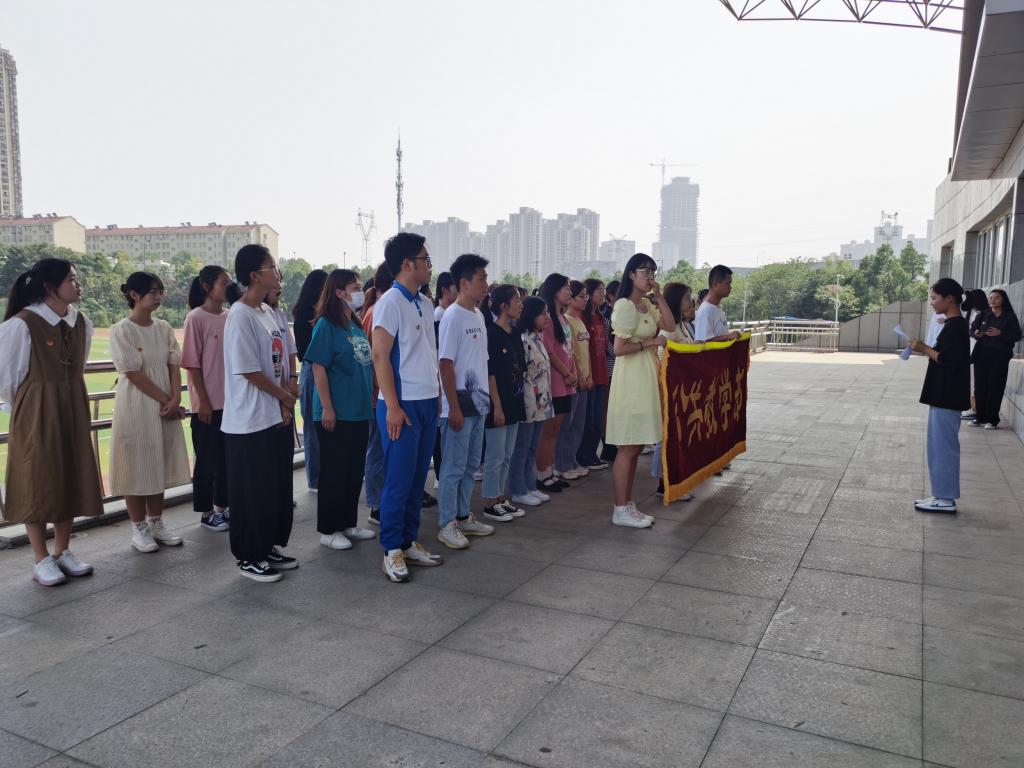 在鲜艳的五星红旗下,团副汪金蕾带领全体团学干部宣誓:“我志愿加入中国共产主义青年团……积极工作,吃苦在前,享受在后,为共产主义事业而奋斗”。展现了当代青年大学生的新风采新面貌。来自公共教学部2021级的三名团支书在活动中发表演讲,赞颂了祖国近几年来在政治经济文化方面取得的伟大成就,叙说着溢于言表的骄傲与自豪,同时为祖国献上了一份深情的祝福,激励广大团学干部牢记历史使命,明确当下目标,投身实践,服务社会。