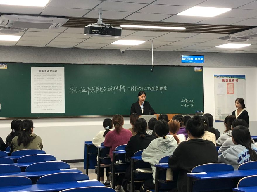 10月24日晚,公共教学部21级新生班级开展以“学习贯彻习近平总书记在纪念辛亥革命110周年大会上的重要讲话精神”为主题的口训,许多同学谈到作为当代青年大学生应该提高自身素质和能力,主动肩负起时代重任。百年前,一群青年喊着“振兴中华”的口号,怀着“亟拯斯民于水火,切扶大厦之将倾”的信念救国救民,百年后新时代的新青年们也应当严格要求自己——以史为鉴、担当使命、开创未来。