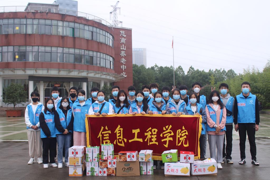 为弘扬中华民族敬老爱老的传统美德,积极营造全社会关注老年人的良好氛围。10月14日,由信息工程学院26名团学干部组成的志愿者队伍在“悠南山养老中心”开展了“爱驻夕阳,关爱老人”的志愿服务活动,为那里的老人们送去了牛奶、水果、蛋糕等慰问品,同时也带去了问候和关爱。