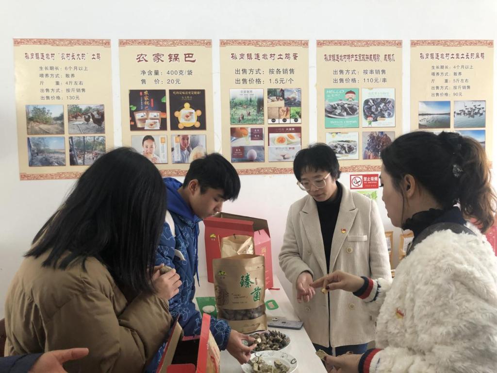 乡村产业振兴,电商传播增路。公共教学部党总支结合新时代产业发展特征,计划利用传播与策划专业优势,带动乡村产业直播促收。孙岗镇纪委书记谢杨热情地向党员老师和传播与策划专业学生介绍了当地的特产美食,在讨论和交流中找寻产品的优势特征,分析消费对象,研究直播推销方式。