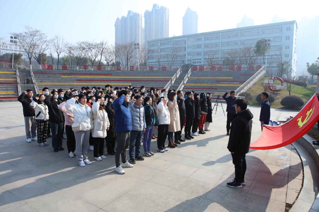 1月3日上午,经济贸易学院全体党总支支委委员和学生党支部在学校党建文化广场举行新党员团体入党宣誓仪式,党总支书记陶云龙、副书记丁蓉、党总支纪检委员曹宝亚,以及学生党支部全体党员老师参会,学生党支部组织委员张超担任主持。