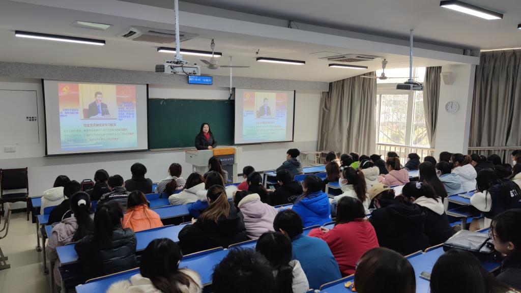 在讲党课中,宋凌云主要以“听习近平总书记讲党史故事 感悟信仰的力量”为主题,引经据典,带领同学们重温习近平总书记讲述的党史故事。故事内容生动、感人至深,再现了中国共产党人在艰难困苦面前始终保持艰苦奋斗的精神和崇高的思想境界,诠释了历史是最生动、最有说服力的教科书。从历史中汲取前进的智慧和力量,感悟中国共产党不忘初心、矢志不渝的信仰力量,义无反顾肩负起实现中华民族伟大复兴的历史使命,团结带领人民进行新民主主义革命、社会主义革命和建设、改革开放和现代化建设伟大事业,谱写了气吞山河的壮丽史诗。