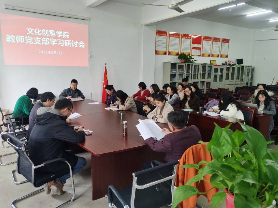 3月2日下午,文化创意学院教师党支部在综合楼210党员活动室举行支部党员学习研讨会。与会人员学习了《中共中央关于党的百年奋斗重大成就和历史经验的决议》以及《中共安徽财贸职业学院委员会关于召开2021年度基层党组织组织生活会和开展民主评议党员的通知》等文件精神。会议由支部书记沈东生主持,支部全体党员教师参加本次学习活动并展开讨论。