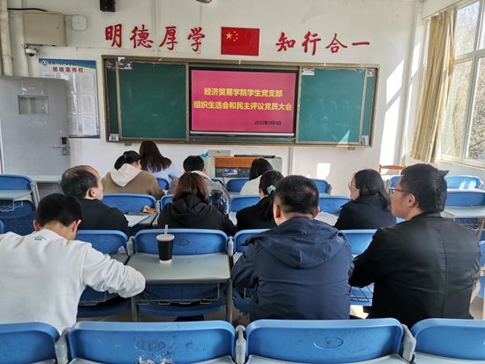 3月9日下午,经济贸易学院学生党支部在3202教室召开2021年度组织生活会和民主评议党员大会。支部全体党员同志参会,党总支副书记丁蓉主持会议。