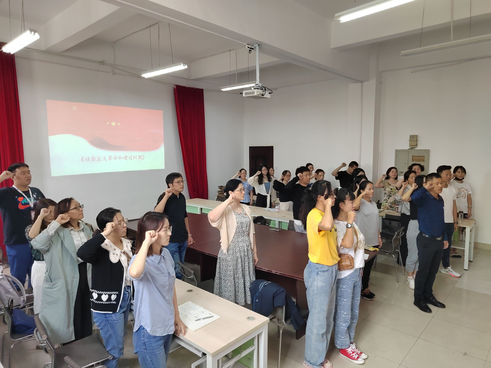 公共教学部教师党支部于9月28日在校办公楼208党员活动室,开展了一次题为《学百年党史,激奋进力量》的党课学习。课前全体党员在党旗前庄严重温入党誓词。