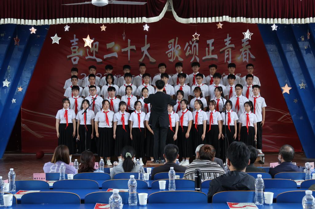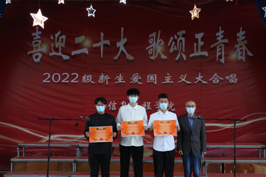 选手们统一着装、动作整齐,以饱满的精神、真挚的情感、嘹亮的歌声表达对党对祖国的赞美和无限热爱。《我和我的祖国》《灯火里的中国》是对党的深情赞美,唱响永远跟党走的主旋律;《走向复兴》《祖国有我》表达了对祖国的祝福和对党的坚定信仰……一首首特色鲜明、催人奋进的歌曲,呈现了信息工程学院学子们坚韧拼搏、激情奋斗的风采,唱响爱党爱国的真挚心声。经过三个小时的激烈角逐,比赛评出一等奖3个班级,二等奖6个班级,三等奖9个班级,最终推荐获得一等奖的数媒2203、数据2201和物联2201三个班级参加校赛。